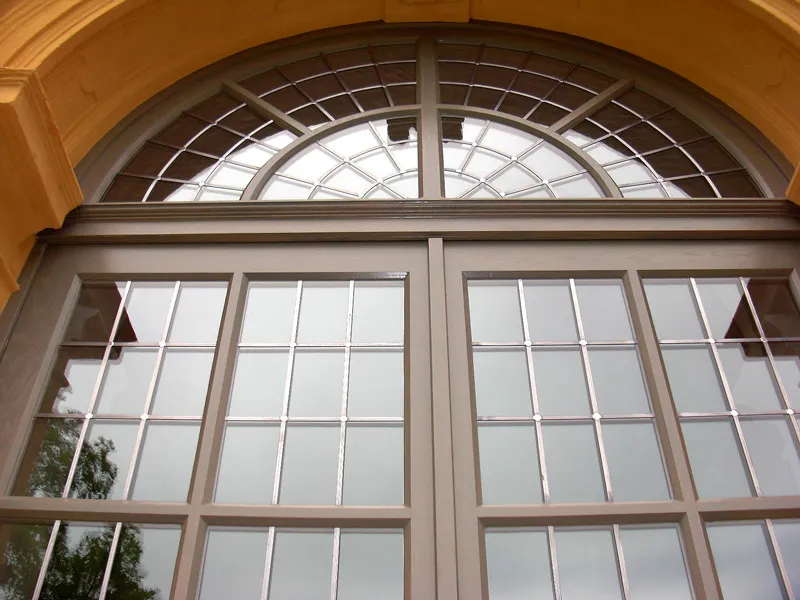 Die Fertigung der Rundbogenverglasungen nach originalen Schablonen war besonders anspruchsvoll und erforderte hohe Präzision, um sich harmonisch in die barocke Fassade einzufügen.